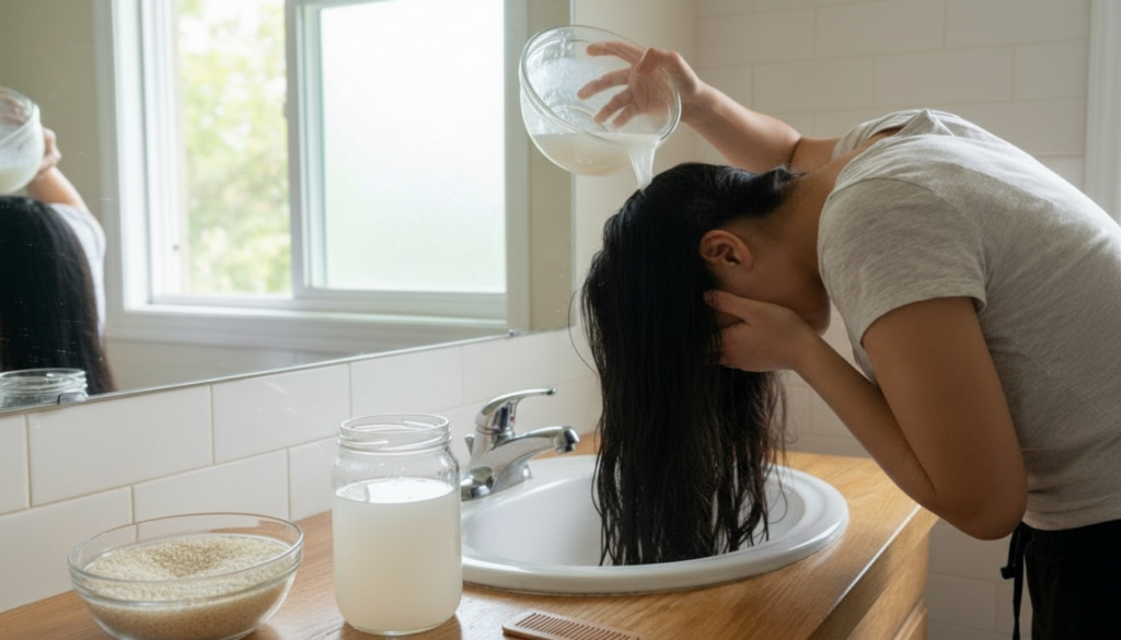 How Rinsing with Rice Water Promotes Healthy Hair Growth